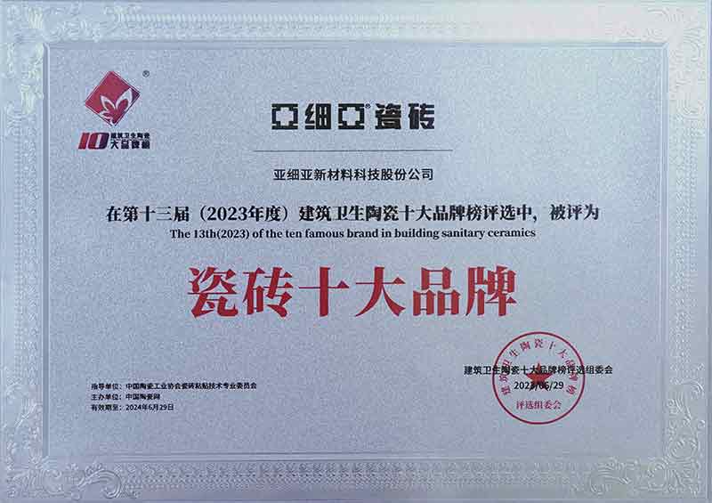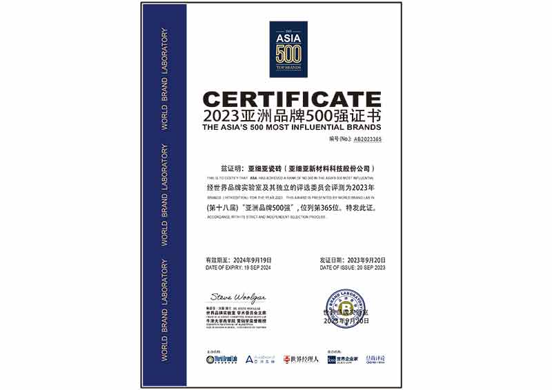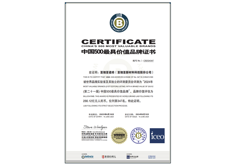 2024年-亞細(xì)亞瓷磚中國500最具價值品牌證書