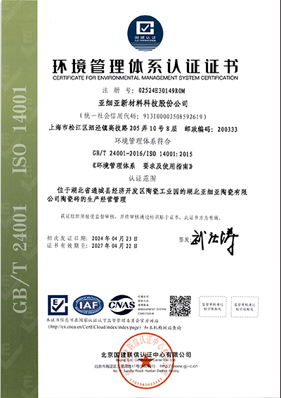 環(huán)境管理體系認(rèn)證證書