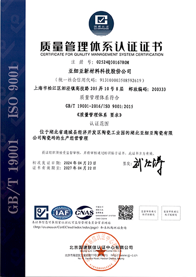 質(zhì)量管理體系認(rèn)證證書2024