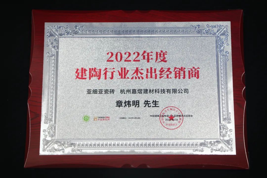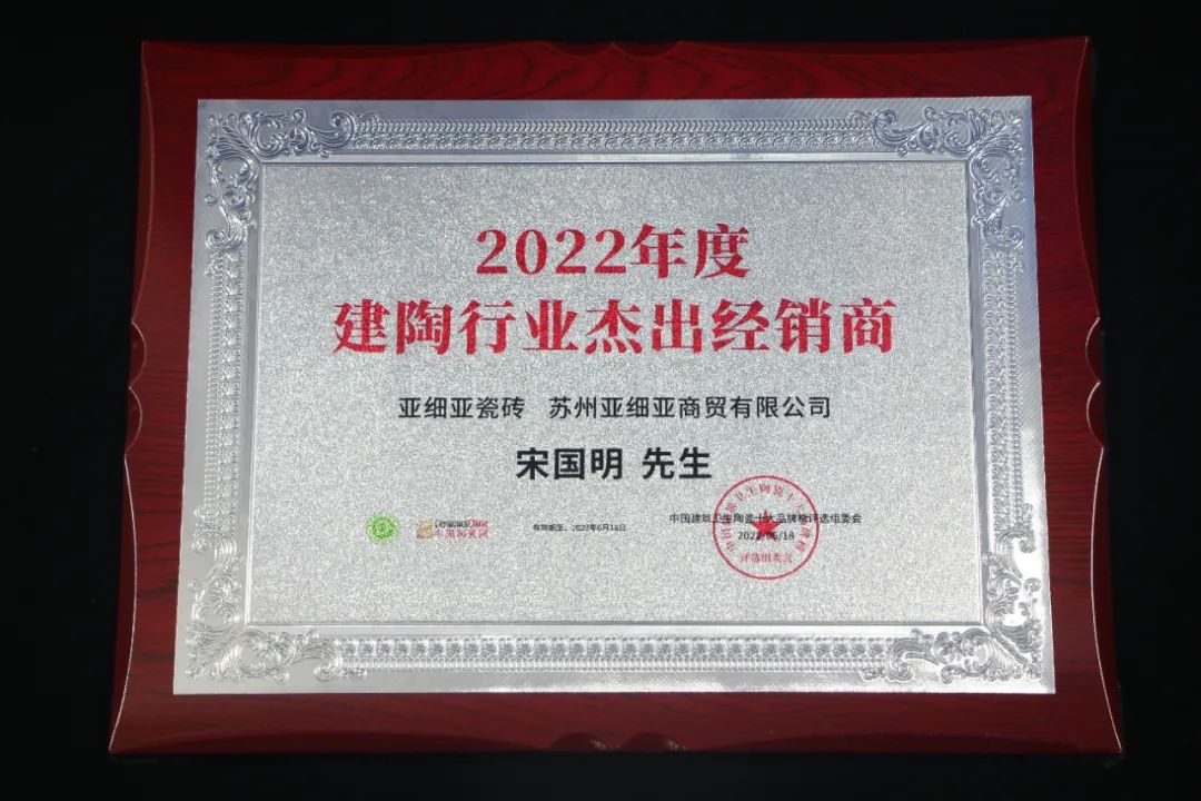 與此同時,亞細(xì)亞瓷磚蘇州經(jīng)銷商-宋國明先生,亞細(xì)亞瓷磚杭州經(jīng)銷商-章煒明先生,獲得2022年度“建陶行業(yè)杰出經(jīng)銷商”。