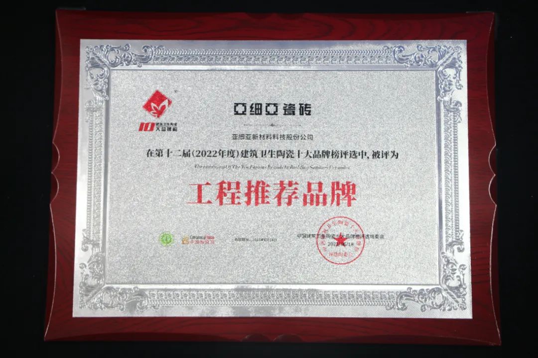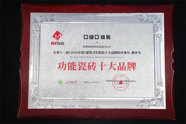 亞細(xì)亞瓷磚榮獲“瓷磚十大品牌”、“功能瓷磚十大品牌”和“工程推薦品牌”三大殊榮。本次獲獎不僅是對亞細(xì)亞品牌的認(rèn)可,也是為品牌繼續(xù)堅(jiān)持高端品質(zhì)注入無限動力!