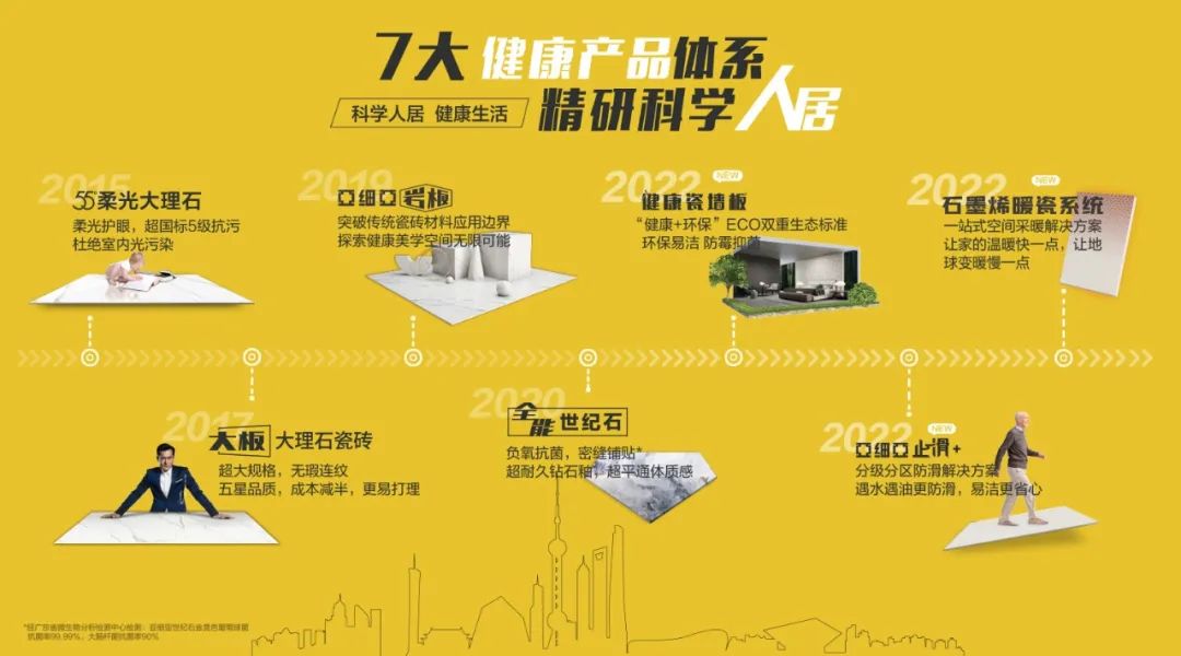 亞細(xì)亞瓷磚深度貫徹消費(fèi)者需求,以強(qiáng)大的技術(shù)研發(fā)能力和生產(chǎn)制造實(shí)力,打造領(lǐng)先的產(chǎn)品競爭力。 以人居功能為核心,構(gòu)架設(shè)計(jì)、產(chǎn)品、研發(fā)、營銷等競爭格局,通過不斷創(chuàng)新,研發(fā)出7大健康產(chǎn)品體系:從“遇水遇油更防滑、全場景分級解決方案”的「亞細(xì)亞止滑+」,到“環(huán)保易潔、 防霉抗菌”的「健康瓷墻板」,以及“拒絕室內(nèi)光污染”的「55°柔光大理石系列」。