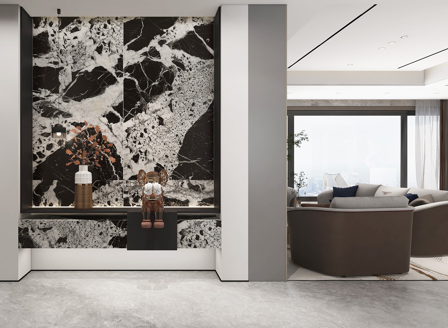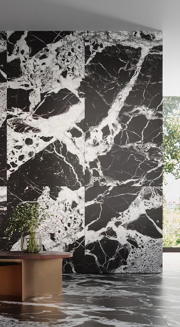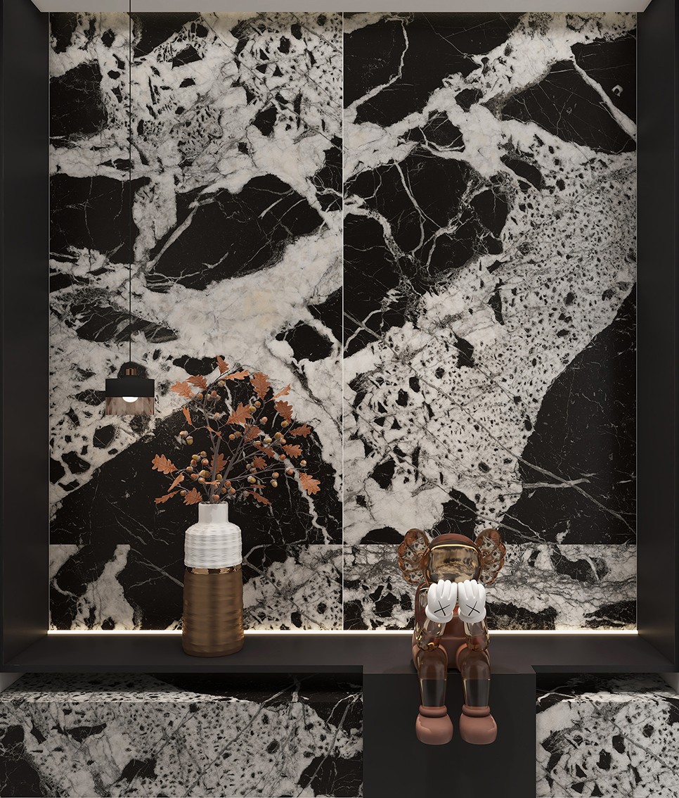 師造化系列以巖板為在載體,潑墨山水畫為靈感,大膽隨意勾勒壯麗山河景色,延綿千年的水墨意趣,或氤氳或渾厚,細(xì)膩質(zhì)感,自在延伸,靈動自然,作為巖板背景墻,咫尺之間,山水如畫,沉淀儒雅逸趣。