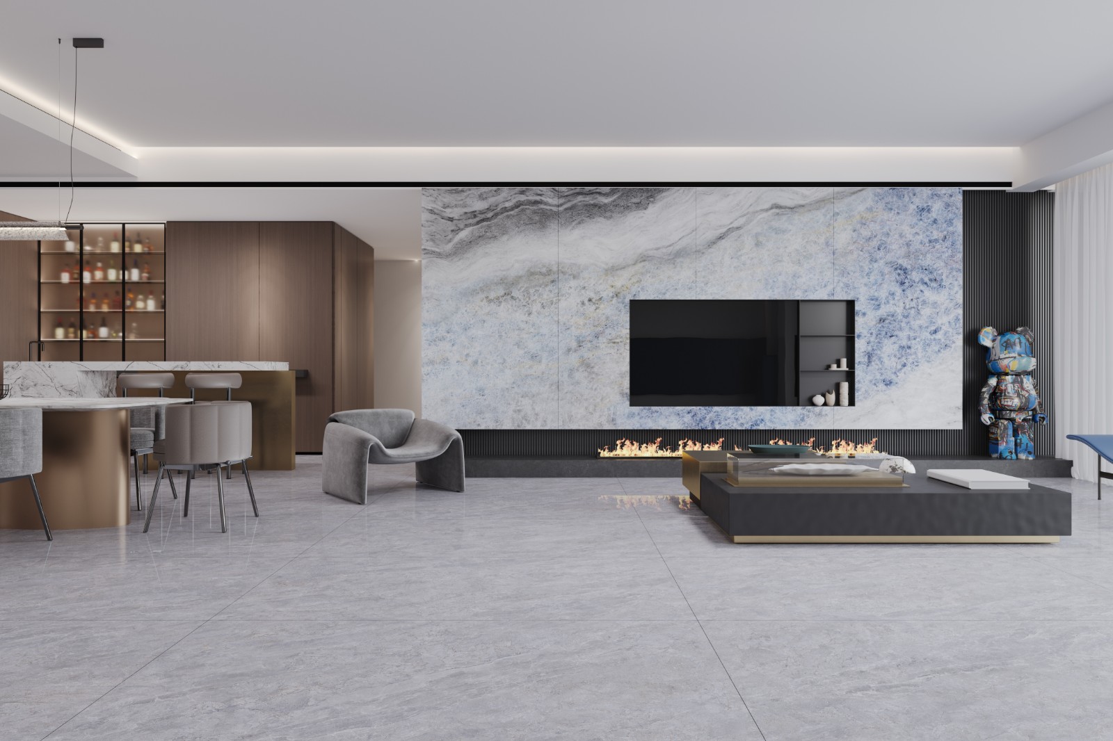 以大自然奔涌的海浪為靈感,在大海的低吟淺唱中,靜訴時光。融合天然原石肌理,透出蓬勃的生機和無窮的力量。用靈動又不失大方的清冷格調(diào),營造舒適自在的和諧感。