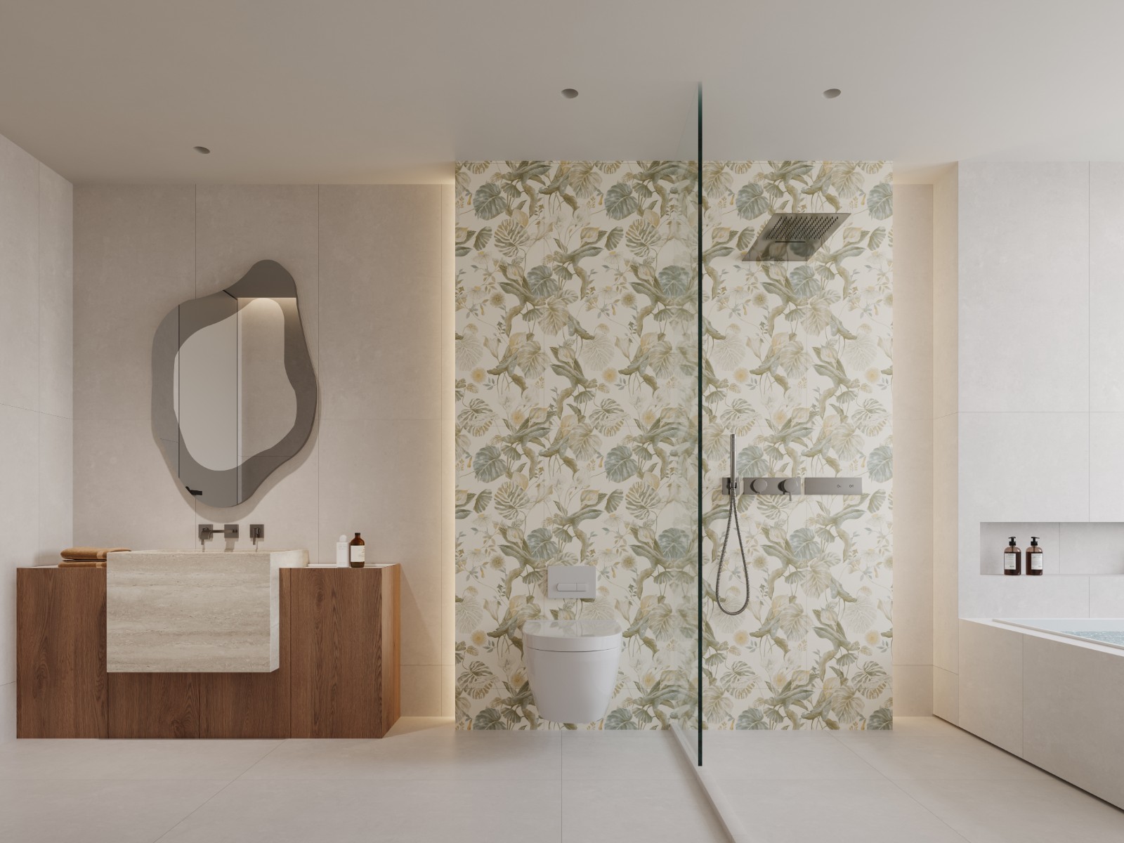 "流動花園”的設(shè)計靈感源自四季花園中花卉的盛開與凋零,以及花園中生命力的流動。我們試圖將這種自然的流動與變化融入花色之中,讓每一塊瓷磚都成為花園的一部分,流動著生命的韻律。將大自然的美麗與和諧帶入室內(nèi)空間,讓人們在繁忙的生活中也能感受到大自然的寧靜與愜意,感受著大自然的生命力與美好。