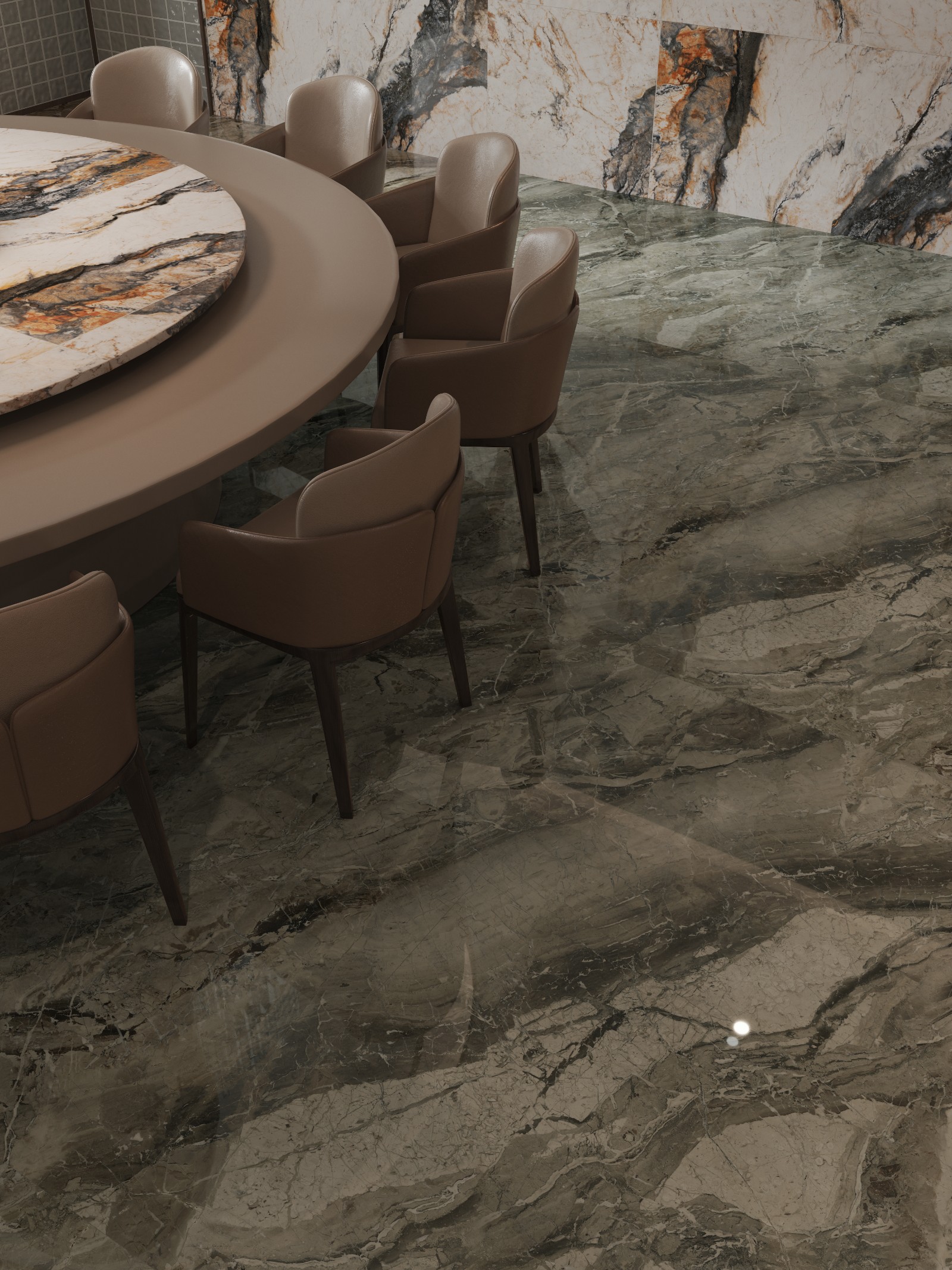 設(shè)計靈感來源于烏尤尼鹽沼的云海,當(dāng) 陽光灑在這片無垠的鏡面上,云朵在天 空與地面之間自由游走,形成一幅流動 的畫卷。我們捕捉了這一瞬的寧靜與和 諧,將云海的輕盈與天空的深邃融入瓷 磚設(shè)計。每一片瓷磚都如同天空之鏡, 反射出室內(nèi)的光影,為您的空間帶來一 份寧靜與深遠.